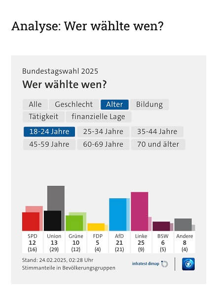 Die Ergebnisse der Juniorwahl der Hessenwald decken sich in großen Teilen mit den Ergebnissen der Bundestagswahl, wenn man die Wählerschaft zwischen 18 und 24 Jahren betrachtet: