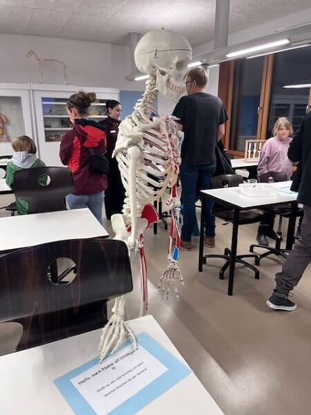 Skelett "Hildegard" begrüßte die Gäste im Biologieraum