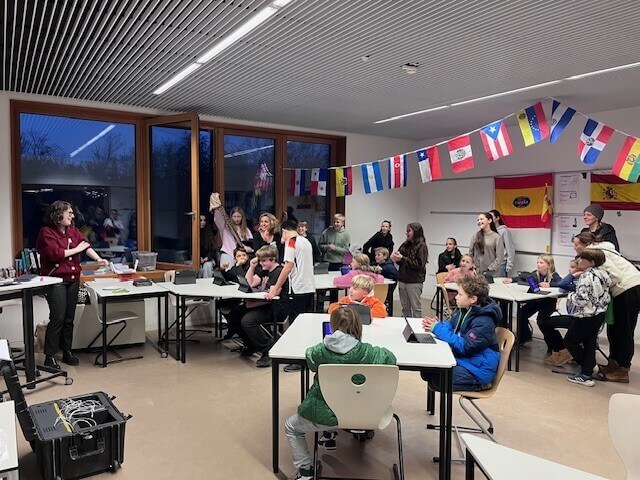 Richtig „Hessenwaldschule live“ konnte man dann in den Fachbereichen erleben: Englischunterricht mit iPads, Chemie-Experimente zum Staunen, die „Night of Biology“ mit Modellen, Mikroskopen und dem Skelett „Hildegard“, kreatives Basteln in der Bibliothek oder die farbenfrohe „Fiesta del Español“ mit dem interaktiven Quiz Kahoot begeisterten Groß und Klein.