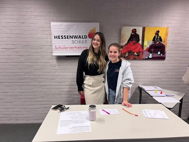 Was danach folgte, war ein buntes Programm, das die Vielfalt der Hessenwaldschule lebendig werden ließ: Herr Wüst stellte mit einer Präsentation die Schwerpunkte der Hessenwaldschule vor, während bei den Schulführungen den Besucherinnen und Besuchern direkt die Klassenräume, Fachbereiche und besondere Lernorte gezeigt wurden. An zahlreichen Infoständen präsentierten sich u.a. die Schülervertretung, das Erasmus-Team, der Schulsanitätsdienst und das Präventionsteam – überall gab es Spannendes zu entdecken.