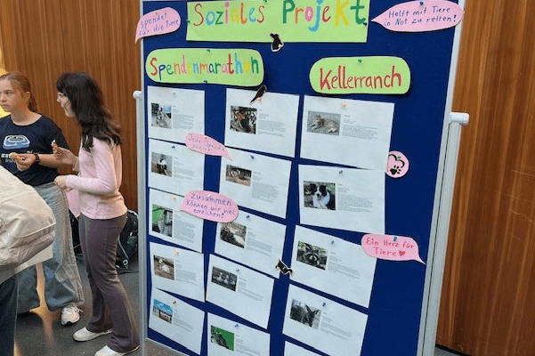 Die Resonanz war beeindruckend: Zahlreiche Schülerinnen und Schüler, Lehrkräfte und Mitarbeitende der Schule beteiligten sich aktiv – sei es durch Sachspenden für die Tombola, Essensspenden für den Verkauf oder direkte Geldspenden. Die Kinder betreuten verschiedene Verkaufsstände und informierten mit Präsentationstafeln über die Tiere auf der Keller-Ranch. Dank der großzügigen Beteiligung konnte ein beachtlicher Betrag von über 600 Euro gesammelt werden. Dieser geht vollständig an die Keller-Ranch und kommt dort direkt den Tieren. Der Tierhilfeverein in Weiterstadt kümmert sich um mehr als 300 hilfsbedürftige Tiere, u.a. gehören ein Gnadenhof und ein Tierheim zur Keller-Ranch. Mehr Infos gibt es auf der Website der Keller-Ranch.