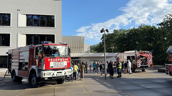 Die Feuerwehr war am 29.08.2025 an der Hessenwaldschule zu Besuch und hat dem gesamten Jahrgang 6 die Jugendfeuerwehr vorgestellt. Unter dem Motto „Jugendfeuerwehr ist WERTvoll“ wurde der Fokus auf demokratische Werte wie Respekt, Toleranz und Freiheit gelegt. Als Highlight kam ein ganzer Löschzug zu Besuch, der die Klasse beeindruckte und die Arbeit der Feuerwehr hautnah und anschaulich erlebbar machte. Unter Anleitung durften die Schülerinnen und Schüler selbst aktiv werden, wodurch sie praktische Sicherheitstipps erfahren konnten. Es war ein sehr lehrreicher Tag, der Verantwortung und Teamgeist in den Mittelpunkt stellte.