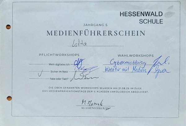 In insgesamt sieben Workshops konnten die Kinder ihr Wissen erweitern, Erfahrungen austauschen und vor allem selbst aktiv werden. Drei Pflichtstationen führten sie dabei an grundlegende Themen heran: das digitale Ich, Regeln für einen sicheren Klassenchat und den Umgang mit Falschmeldungen. In weiteren Wahlworkshops setzten sie sich kreativ und praxisnah mit Themen wie Cybermobbing, Gaming oder Bildschirmzeiten auseinander.