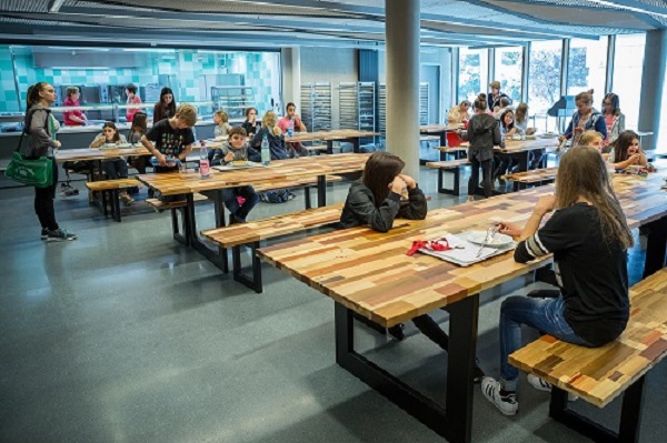 Uns ist es wichtig, dass die Schülerinnen und Schüler ein gesundes, warmes Mittagessen zu fairen Preisen genießen können. In Zusammenarbeit mit unserem Caterer CAT Europa Catering und der Agrarservice Starkenburg GmbH bieten wir an jedem Schultag zwei verschiedene warme Tagesmenüs, in unserer Mensa an. Das Angebot umfasst täglich ein klassisches Menü mit Fleisch oder Fisch, ein vegetarisches Menü, ein laktose- und glutenfreies Menü, jeweils mit Dessert, sowie ein kleines Alternativgericht. Beim gemeinsamen Essen in der schönen Atmosphäre unserer gut ausgestatteten Mensa mit Blick ins Grüne schmeckt das Essen gleich noch besser.